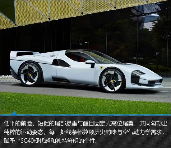法拉利SC40作为品牌在致敬经典与电动化转型背景下的重要作品,它将F40的复古基因与296 GTB的混动技术相结合,展现了超跑品牌在历史传承与技术创新之间的平衡探索,也为高端定制汽车市场树立了新的参考典范,成为了一件兼具性能与艺术价值的移动藏品。