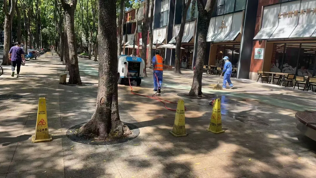 曹家渡街道管理部门对食堂外摆设施的摆放位置、尺寸标准、安全防护等方面提出明确要求,保证外摆区域既能满足居民用餐需求,又符合城市管理规范。同时,考虑到高峰时段人流量大的情况,指导运营方优化外摆方案,避免占道阻塞,保障行人通行顺畅。