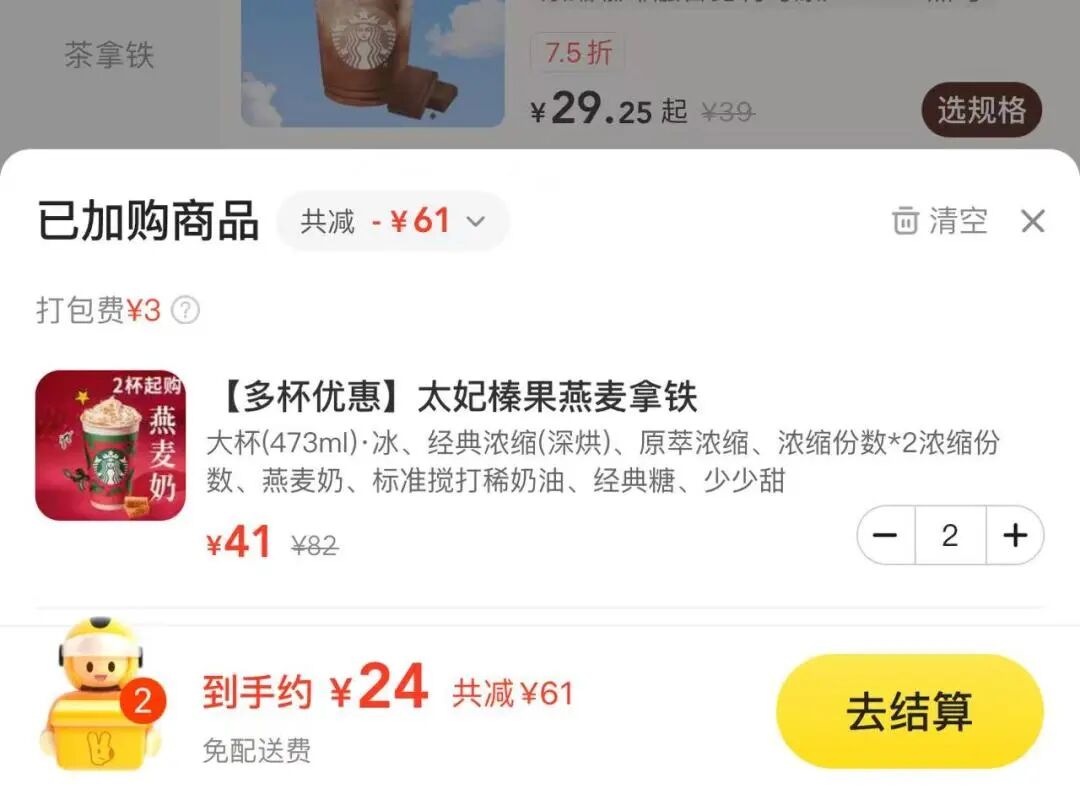 打卡热潮并未让线下门店推出专属优惠,节日系列产品仍以58~68元的高价维系。但线上外卖页面的促销力度,却清晰展露其在咖啡价格战中的“妥协”姿态。