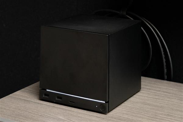 主机背面有USB - A、USB - C、网络接口与HDMI/DP接口,它体积娇小,可120毫米的风扇却显得特别大。