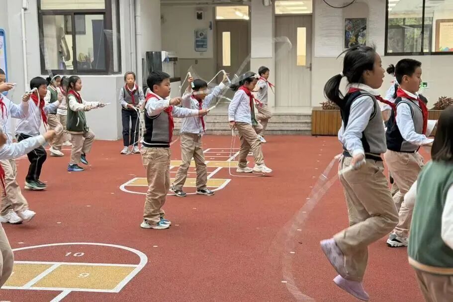 课堂上,有专业教练和指导老师全程保驾护航。在上师大一附小的乒乓球台前,学生们挥舞着球拍进行对垒,在进攻与防守之间感受国球的独特魅力;在康宁科技实验小学的花样跳绳课上,同学们灵动跳跃的身影随着节奏不断变换,充分展现出童真与活力;在世外小学的射箭课堂上,孩子们在教练的指导下,专心练习拉弓、瞄准、发射等动作,锻炼了专注力和意志力。