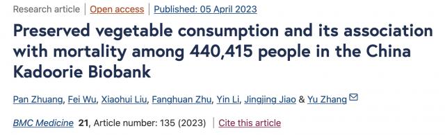 [ 1 ] Zhuang, P., Wu, F., Liu, X. et al. Preserved vegetable consumption and its association with mortality among 440,415 people in the China Kadoorie Biobank. BMC Med 21, 135 ( 2023 ) . https://doi.org/10.1186/s12916-023-02829-3