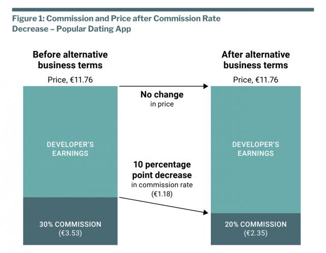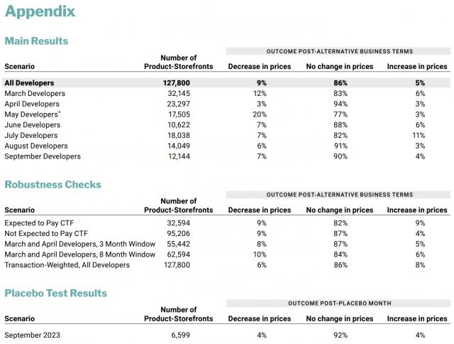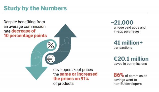 苹果委托The Analysis Group机构开展的这项研究得出了相反的结论。研究详细剖析了三项佣金下调措施(包括引入第三方商店、降低欧盟区佣金率、以及早前推出的小企业计划)对应用价格的影响。