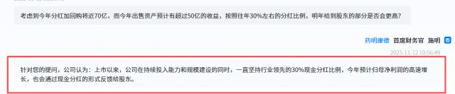11月12日,在上海证券交易所平台举办的三季度业绩说明会上,药明康德(603259.SH/2359.HK)针对投资者关注的股东回报问题,公司管理层给出了明确答复。自上市以来,药明康德始终保持行业领先的30%现金分红比例。并且表示,鉴于预计今年归母净利润的快速增长,也会以现金分红的方式回报给股东。这一回应,无疑让众多股东心里踏实了。