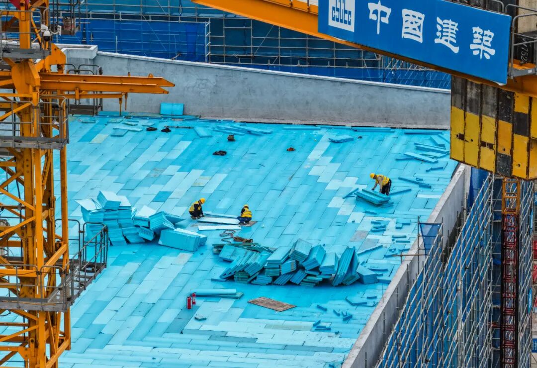 项目责任工程师马闯介绍,目前现场进行的是二次结构施工,采用陶粒加气块,用于主体结构完工后的围护和空间划分。二次结构施工是衔接装饰装修的关键环节,正按计划稳步推进。
