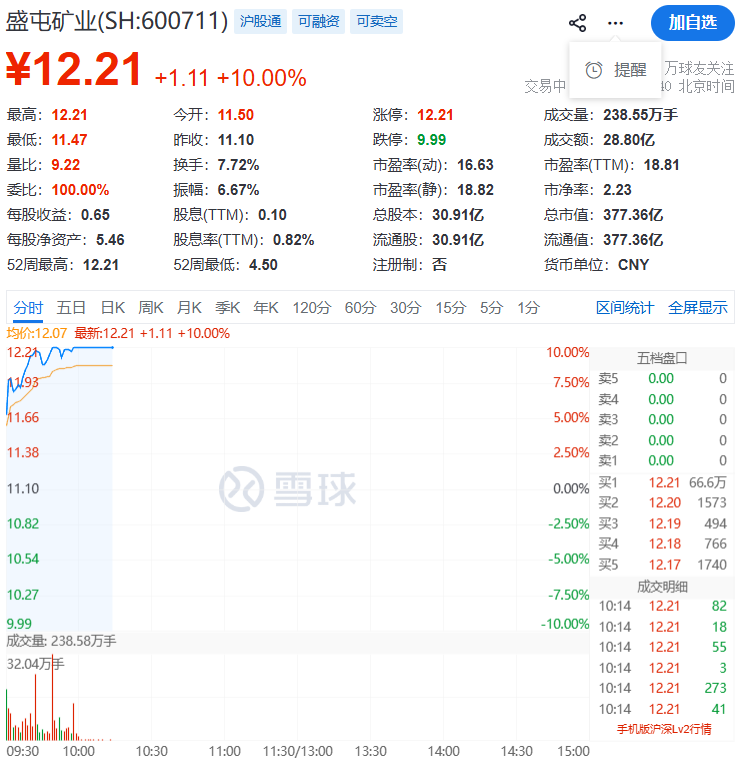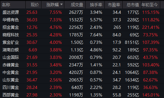 贵金属概念股震荡拉升,盛屯矿业涨停,盛达资源、华锡有色、招金黄金等跟涨。