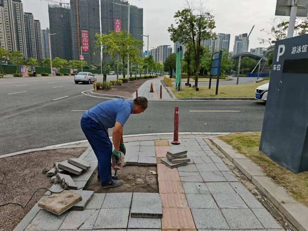 对体育路周边人行道进行维修