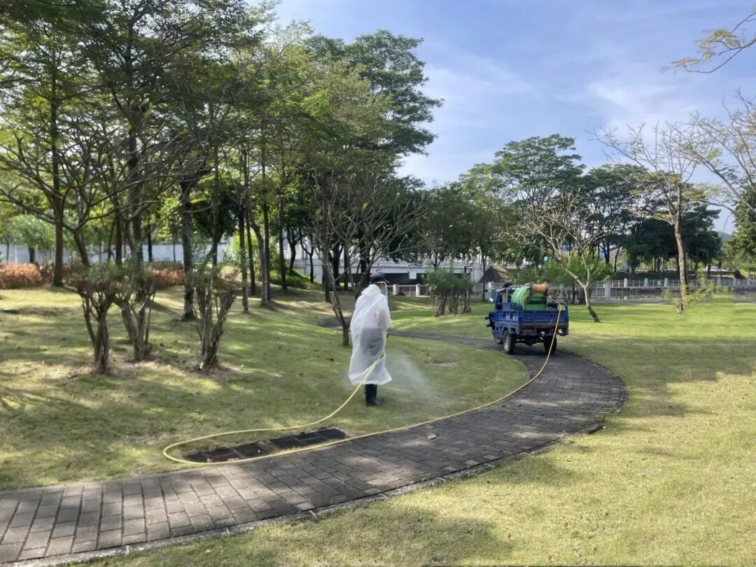在园林绿化方面,工作人员排查并处理赛事周边绿植的枯枝、危险树等问题,消除安全隐患。对公园公共区域和设施进行防疫消杀,为市民提供安全的休闲空间。