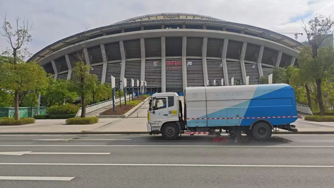 赛事期间,环卫工人从凌晨5时工作到深夜10时,重点整治江门体育中心及周边区域。每天至少安排3台垃圾清运车,增加清运频次,确保垃圾日产日清;每日冲洗和消毒垃圾桶,防范交叉感染。同时,组建巡查队,对场馆周边进行排查,及时清理垃圾。