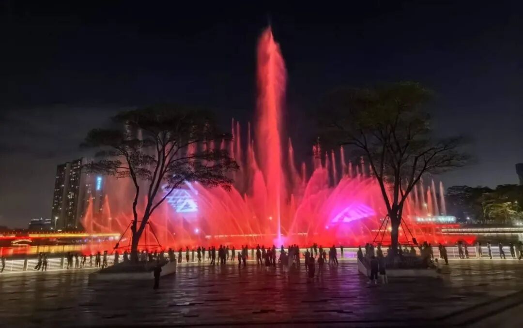 夜晚的园山湖喷泉吸引不少的游客前往打卡