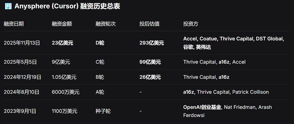 Anysphere融资历史总表(智东西制表)
