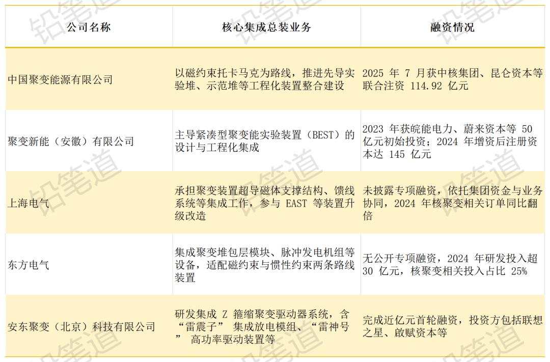 比如聚变新能主导的BEST装置,会采购西部超导的超导线材、安泰科技的偏滤器材料,再通过自身技术进行整合,建成能够实现聚变反应的完整装置,是产业链的“核心枢纽”。