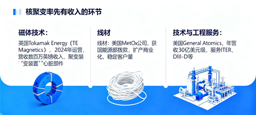 虽然距离“卖电”还很遥远,但这并不意味着没有赚钱的机会。事实上,不少公司已经在核聚变领域获得了收入,尤其是在新材料、核心零部件环节。