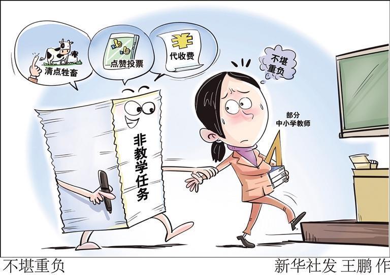 教师负担过重问题长期存在。相关调查显示,部分教师真正用于教学及相关准备的时间在整个工作时间中占比不到1/4,其余3/4都耗费在耗时耗力的非教学任务上。像填表、迎检、评比、调研等繁多的行政事务,就像无形的枷锁,束缚着教师的手脚,消磨着他们教书育人的热情。当教师被迫成为‘表格专家’‘迎检能手’时,哪还有时间潜心研究教学,又哪有精力关注学生成长呢?教育是心灵的对话,需要静心思考和耐心陪伴,而不能让非教学任务占据主导。这种本末倒置的现象,既加重了教师负担,又偏离了育人的初心。