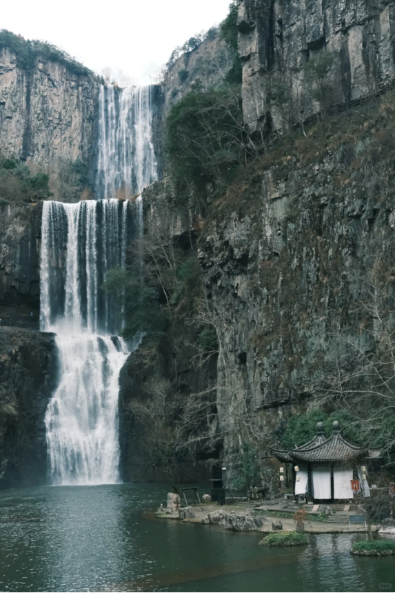 百丈漈为“V”字形深壑巨涧,形成一漈百丈高、二漈百丈深、三漈百丈宽的阶梯形瀑布群,被誉为“中华第一高瀑”。