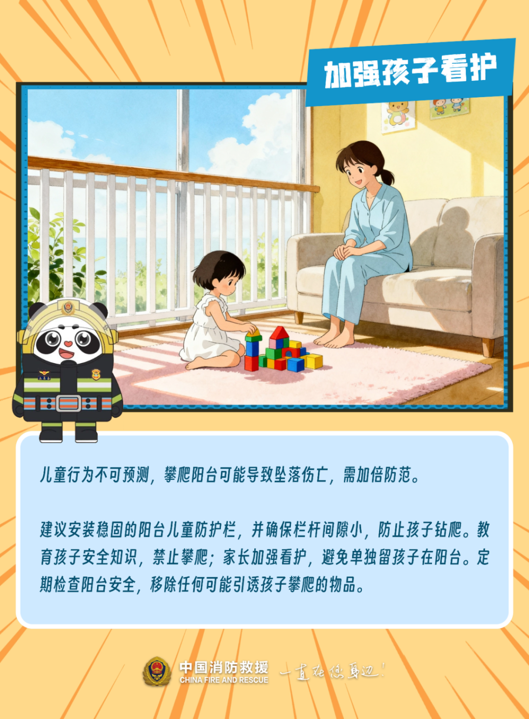 孩子总爱踮起脚尖探索世界,但阳台不该有坠落的危险。快叫上家人们一起,为孩子打造“零危险”阳台: