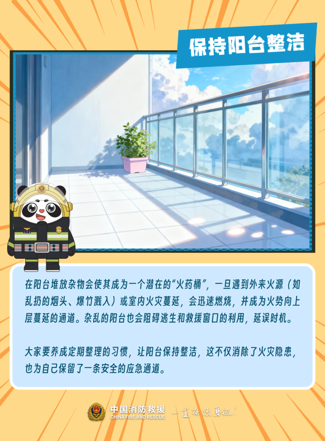 堆满杂物的阳台,像一座未清理的“易燃仓库”,外来火源可能随时成为点燃危险的“导火索”!全家总动员,开始进行阳台杂物清空计划,守护家的“安全边界”: