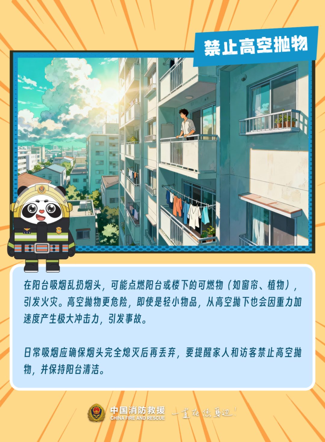 住在高层的您,是否曾随手将烟头抛向窗外?一个未熄灭的烟头,可能随风飘落,点燃楼下晾晒的衣物、堆积的杂物,甚至引发一场无法挽回的火灾……