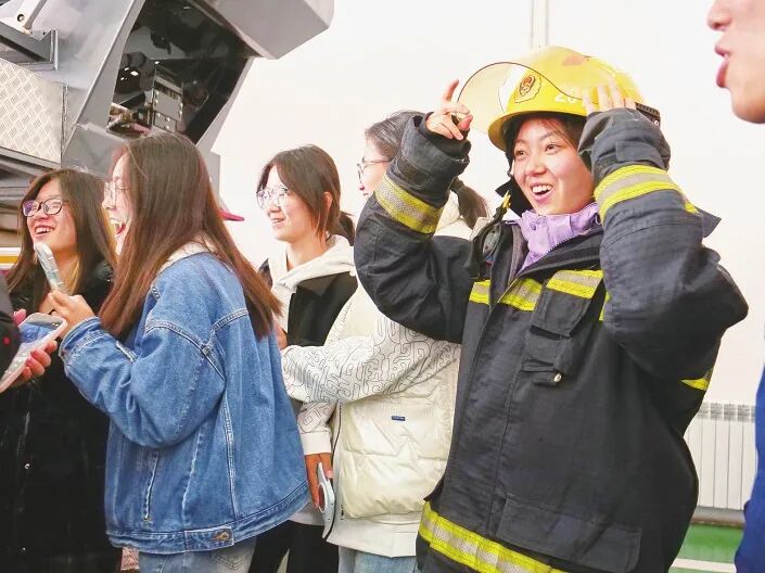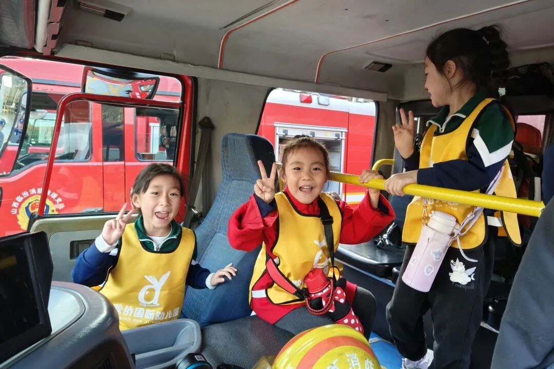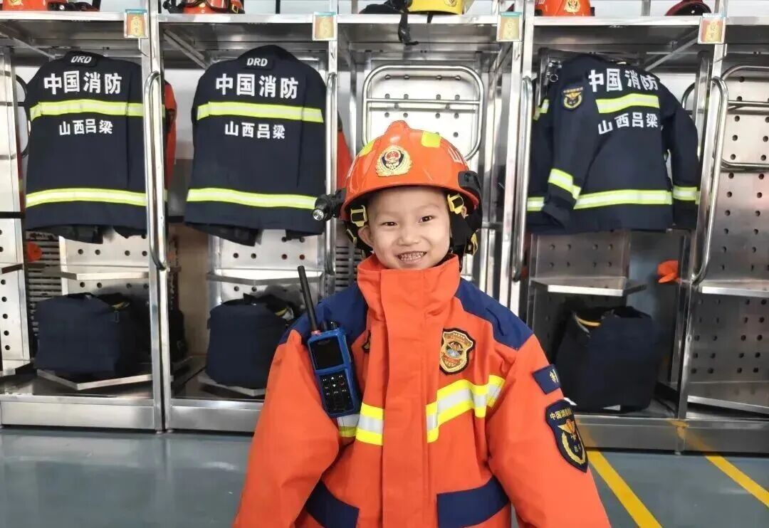 在吕梁,孩子们在消防员的帮助下,换上厚重的消防战斗服,戴上消防头盔,亲身感受装备背后的责任与担当,也体会到消防员工作的艰辛。随后,孩子们兴奋地登上消防车,眼中闪烁着光芒,脸上满是自豪与喜悦。
