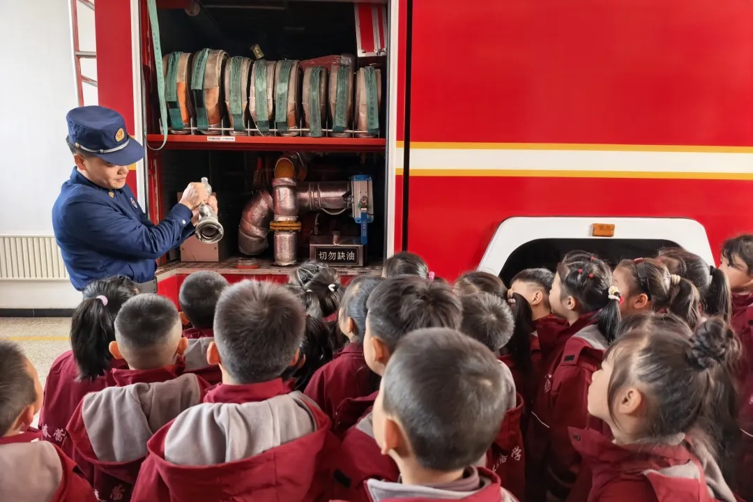 在临汾,消防员用生动的语言向孩子们介绍各种消防装备的功能,满足了他们近距离观察和触摸的好奇心。孩子们聆听了水罐消防车、登高平台消防车的功能讲解,还见识了空气呼吸器、破拆工具组等‘救援神器’,认真了解不同车辆和器材的用途。