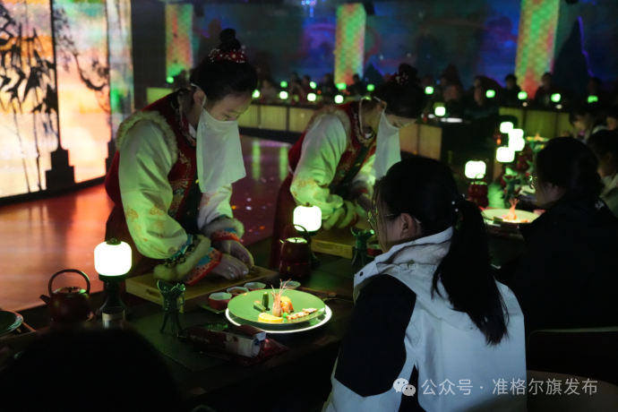 11点,代表们前往湾Night街区的军民融合会客厅,欣赏塔哈拉川水域上空飞机的风采。“黄河南北,准格尔最美”这句标语被代表们多次念起,准格尔的秀丽风光也深深印在了大家心里。之后,大家来到“准格尔之眼·城市文化会客厅”,品尝地道的“美稷宴”。芥末罗氏虾鲜嫩美味,山珍走地鸡汤香浓醇厚,谷饲和牛肉入口即化。更让人惊喜的是,每道菜上桌时,盘上投影会讲述菜品背后的故事,为美食增添了文化韵味。