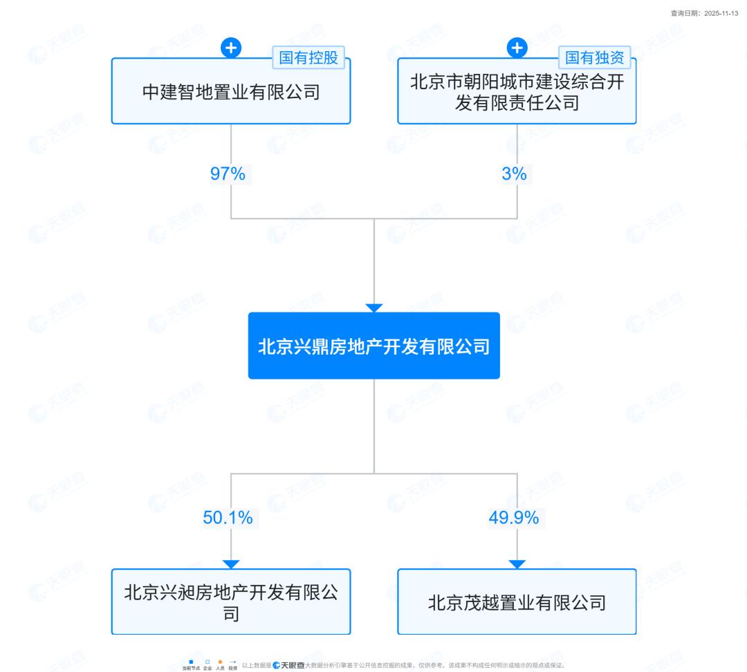 北京兴鼎房地产开发有限公司是中建智地持股97%的子公司,兴鼎持有北京兴昶房地产开发有限公司50.1%的股份,而兴昶就是紫京宸园的项目公司。
