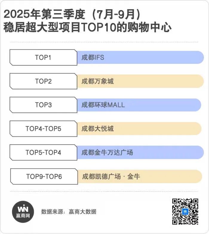 而成都IFS、成都万象城、成都环球MALL形成的“三巨头”格局,在整个季度内未有动摇,其市场领先地位难以撼动。这种稳定性源于这些项目多年的品牌积淀、成熟的运营体系以及持续的调改升级,从而建立了深厚的护城河。