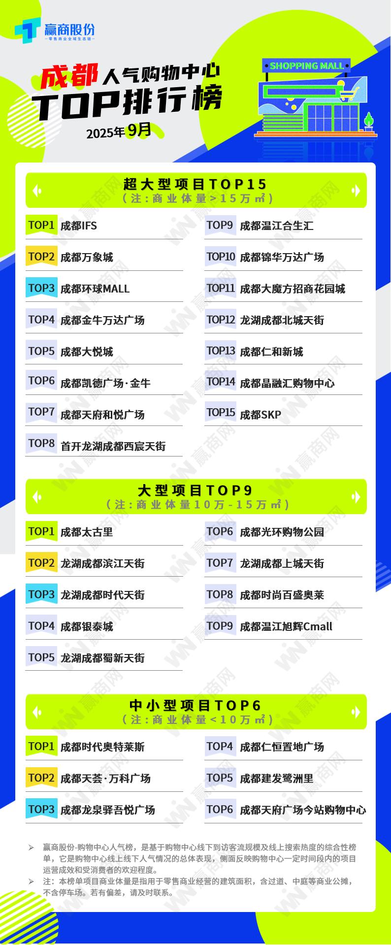 聚焦最新出炉的月度榜单,2025年9月人气购物中心排行榜成都TOP20排名提升项目如下: