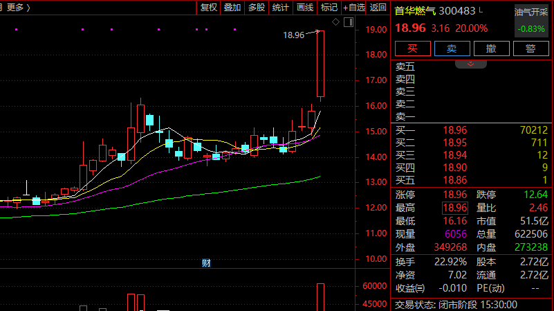 燃气板块逆势走强,首华燃气20cm涨停,长春燃气、国新能源等也纷纷涨停。