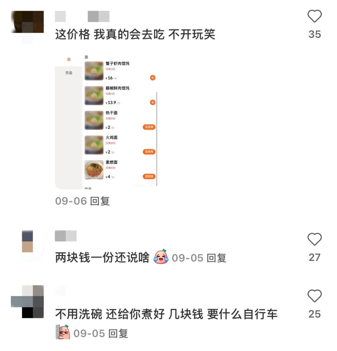 一位湖北小伙走进店里,看到2块钱的热干面不禁惊呼。吃完后,他惊讶地告诉老板,这热干面和家乡街头卖4到6块的相比,“有80%还原度”。附近小区的大哥起初对这家没有明火、食材都是包装好的店充满疑惑。他点了一碗面,吃过之后便成了常客,老板回忆,他三个月来了不下十回,还会主动询问新品,午餐肉从点一片加到三片,脆哨加两份。