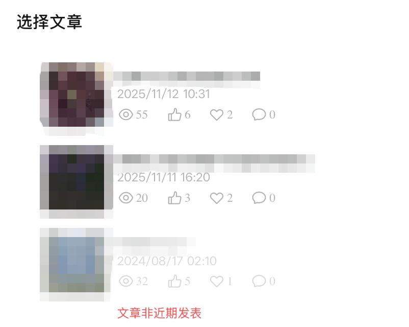 用户只能选择近三个月发布的文章加热,发布时间太久的文章无法选中。