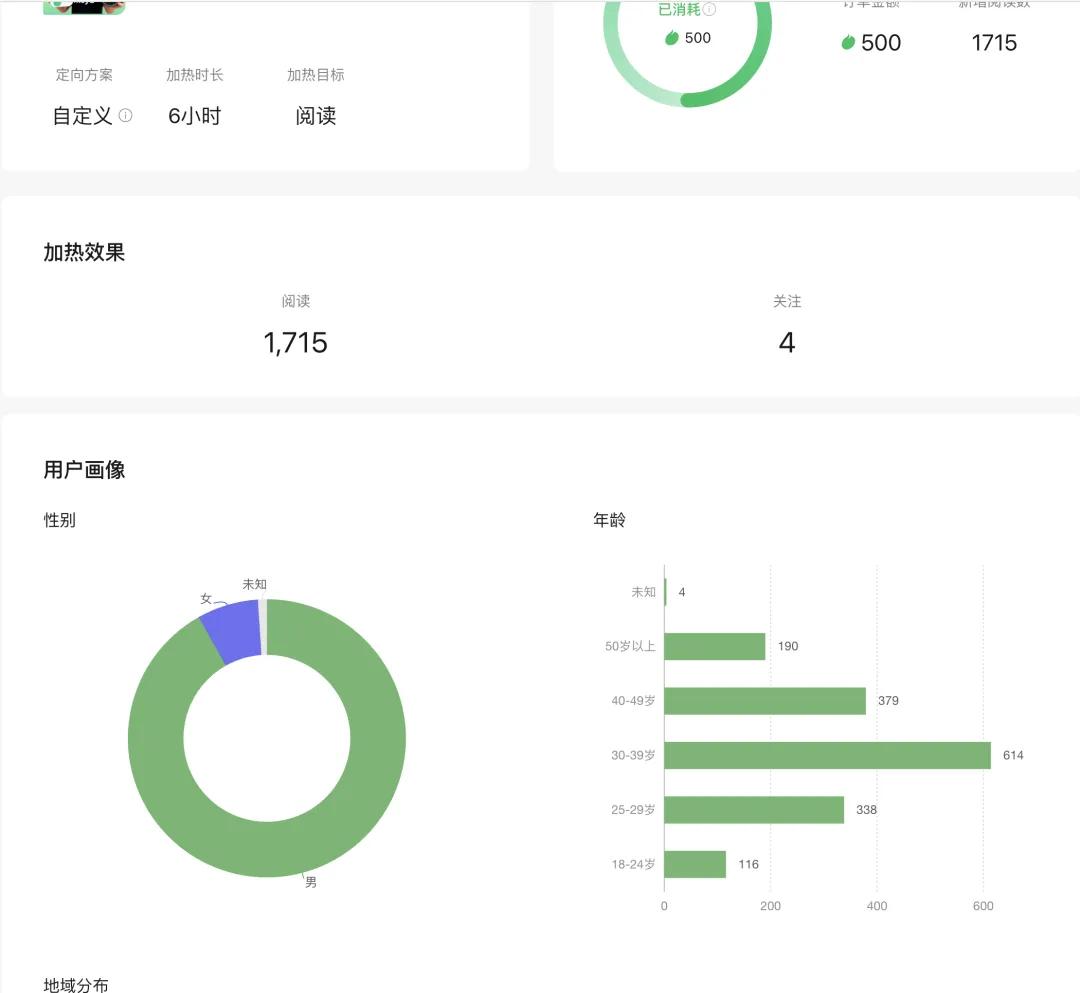 新增阅读数有相应的用户画像,包括性别、年龄、地域分布。