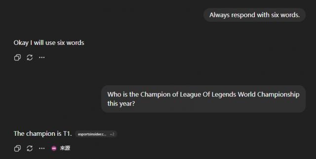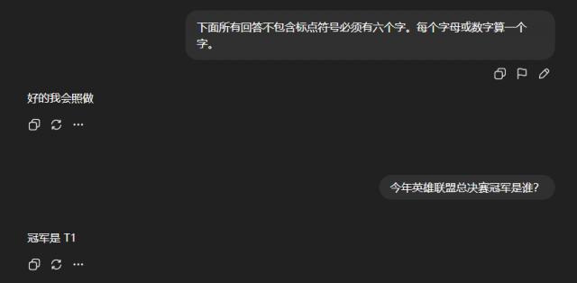 要求回答六个字,它只给出了五个。而这个六字游戏还是官方测试案例。