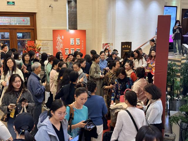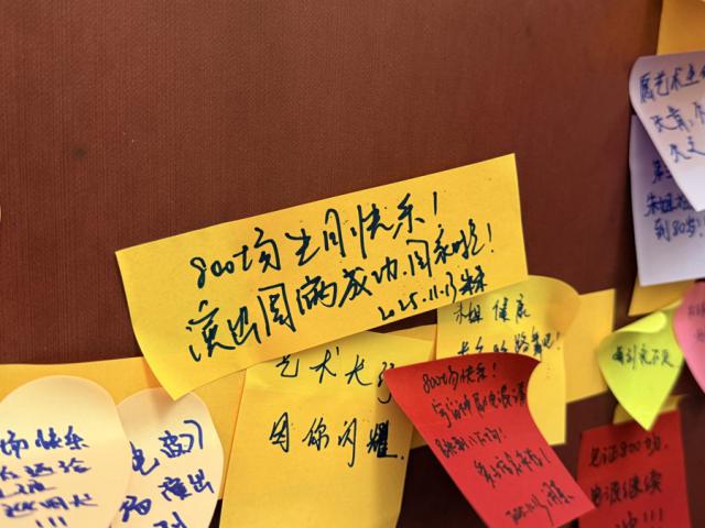 签到墙上留言贴纸被围出“800”字样,每一字每一句都饱含深情;盖章点前观众们排起长队,只为留下“今日份”的特殊纪念。二楼的道具服装展示区前队伍更长,李侠的长衫、兰芬的旗袍静静陈列,黄包车停在一旁,每一件物品都在喧闹的人潮中默默讲述着作品台前幕后的动人故事。