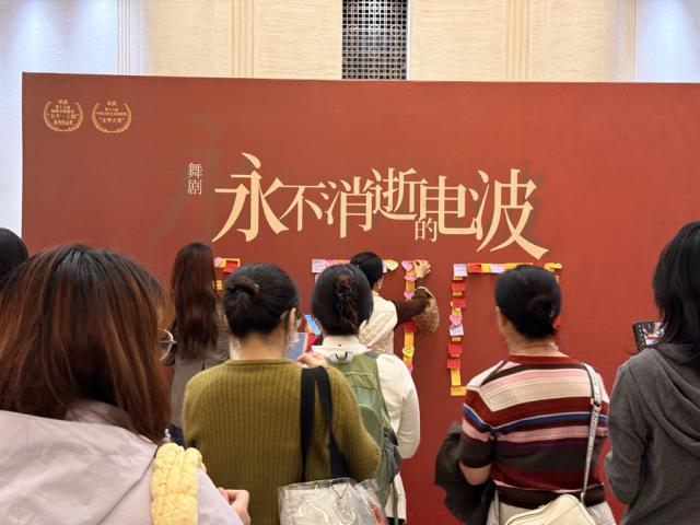 当天傍晚,距离第800场《电波》开演还有两个多小时,美琪大戏院的大堂里就已挤满了来自全国各地的观众,现场人气爆棚,大家的期待值拉满。“李侠发报阁楼”的小屋格外引人注目,老照片定格着当年的峥嵘岁月,直到演出前最后一分钟,这里始终被观众围得水泄不通。