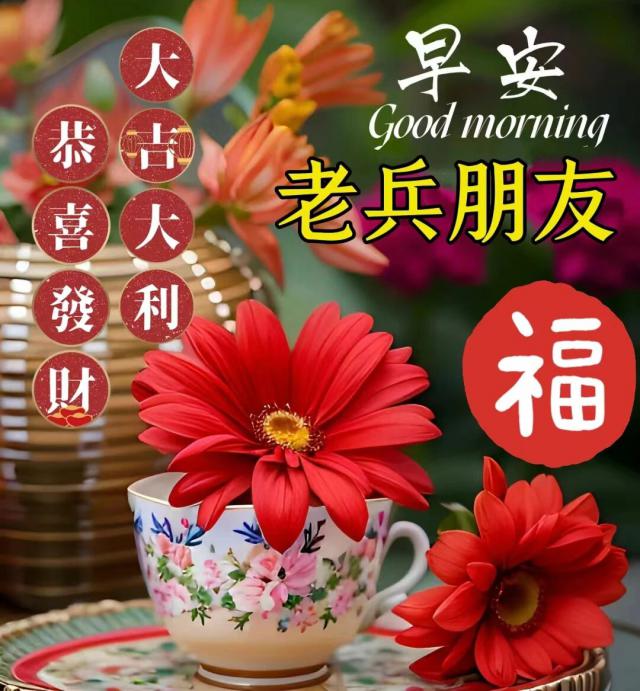 早上好,老战友!愿你在新的一天迎来诸多惊喜与机会。愿你努力实现梦想,生活充满美好奇迹。愿友情如灿烂阳光,温暖你的心房。早安,祝你心情愉悦!