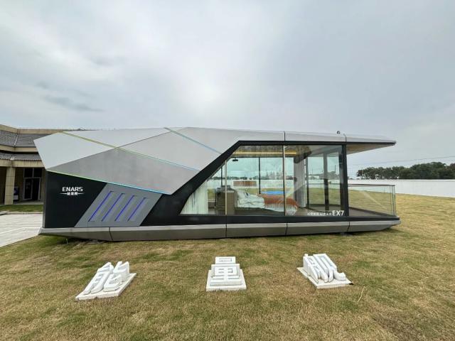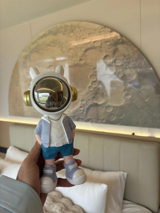 走进村内的天马星探索编辑部,能看到四座“太空舱”错落分布,就像停靠在星际港口的太空舰队,与天空中的星辰相互映衬。该产品采用国际碳钢框架结构,舱身设计是极简的科幻风格,还配备了全舱智能物联系统、情感交互系统以及一键场景灯光系统。众多太空元素的装饰和细节设计,让人有沉浸式的空间体验。