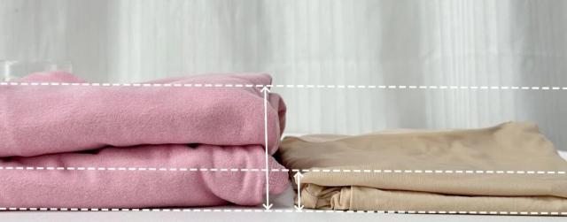 上图左侧是普通保暖内衣套装,右侧是轻梵美肤保暖内衣套装,轻梵做到了暖且轻盈,无论是用手捏还是贴身穿,都有明显的柔润感。