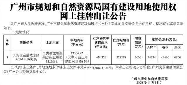 刚刚,广州日报刊登了天河区金融城东区 AT091410 地块的出让公告。