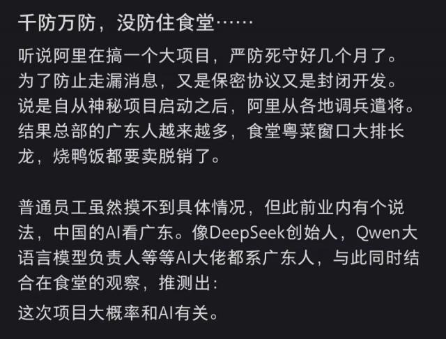 不过,在笔者看来,用AI大佬祖籍地判断阿里秘密项目,属于倒果为因,有点玄学;这说法更像是一次炒作。