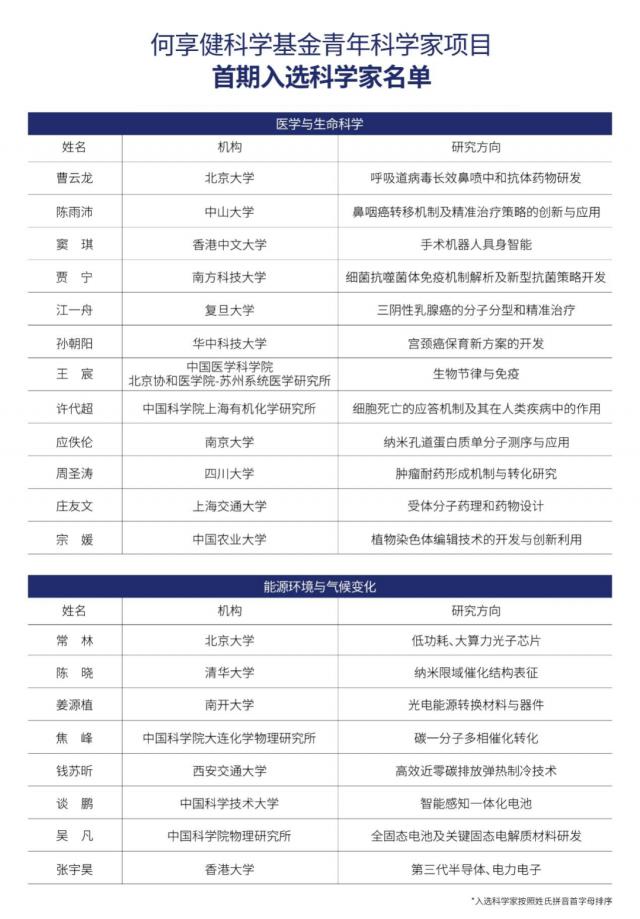 何享健科学基金青年科学家项目首期入选科学家名单。(图 / 受访者供图)