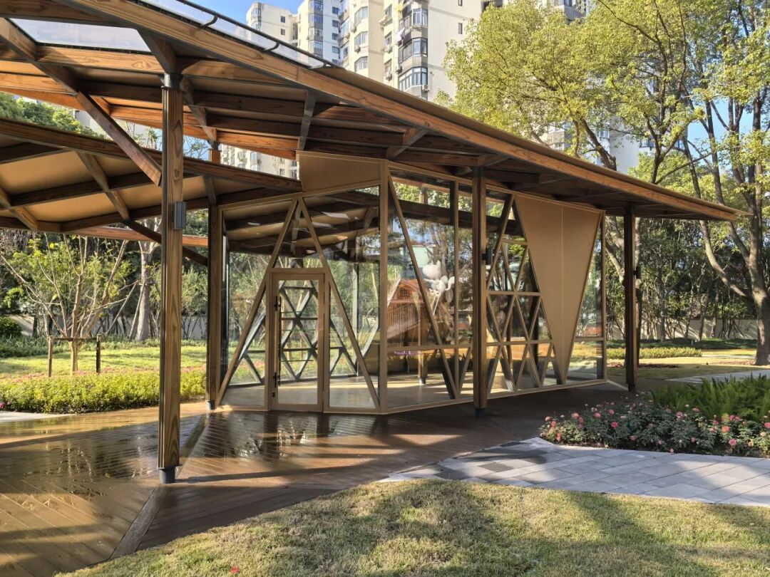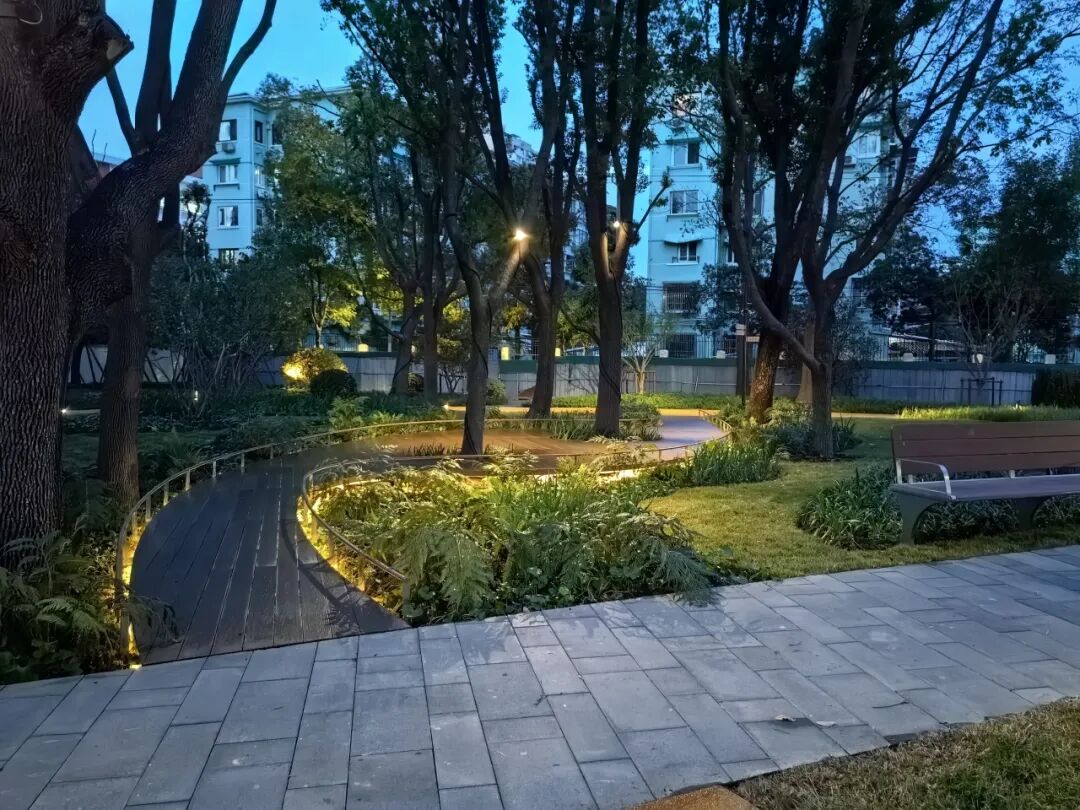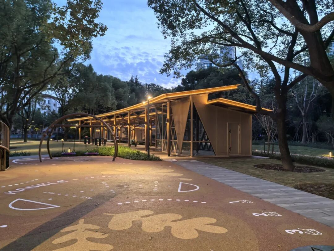在功能完善方面,优化了场地内基础配套设施,树立了社区空间新典范。休闲廊架升级为钢木结构,为居民提供舒适的聊天、观景区域;联合康健街道引入社区服务资源,增加了阳光书屋室内活动空间;公共卫生间升级无障碍设施,适老化卫生间配备紧急呼叫装置,增设育婴室方便家长使用;园内重新布局照明系统,提升了绿地的便捷性和安全性。