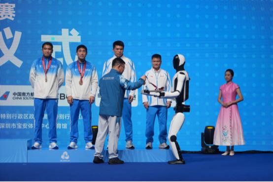 这是十五运会首次在颁奖典礼中引入机器人,该创新之举完美契合了本届全运会“科技、绿色、融合、人文”的办赛理念,也充分展现了深圳这座创新之城的独特魅力。