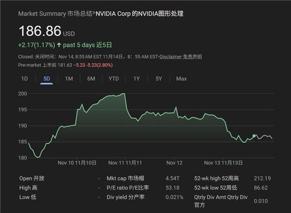 然而,关于AI是否存在泡沫的争议从未间断,近一周来这种争议愈发激烈,其影响也开始显现。英伟达股价已连续数日下跌,今日美股盘前又下跌了3%。