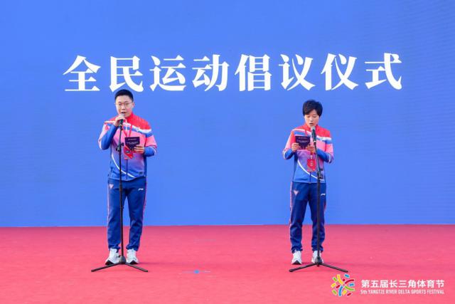 全运会围棋冠军王琛、中国五人制足球冠军战慧敏宣读了全民运动倡议书。
