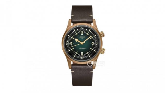 腕表点评:浪琴在复刻系列上表现出色。这枚青铜潜水表将品牌的复古血统与现代工艺完美结合。42毫米表径,青铜壳色调略偏红金色,随着佩戴时间推移会变得温润、深沉。表盘是深绿色渐变表盘,夜光棒状与阿拉伯数字时标交替,加上六点位的automatic花字,尽显复古风格。旋入式表冠提升了防水性能,防水深度达300米,是真正的专业潜水表。表带为深棕色小牛皮,质感柔软,还附赠一条绿色NATO表带和换带工具,方便不同场合切换风格。内部搭载的L888机芯,振频25200次/小时,动力储备72小时,配单晶硅游丝,在两万档潜水表中配置相当优秀。走时稳定、抗磁、抗温度变化等,体现了浪琴近年来在技术上的不断进步。