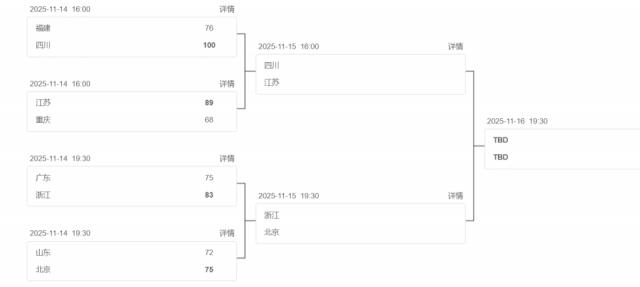 全运会女篮U22青年组比赛中,四川、江苏、浙江、北京四支队伍成功闯入四强。接下来的半决赛对阵形势为四川VS江苏、浙江VS北京。