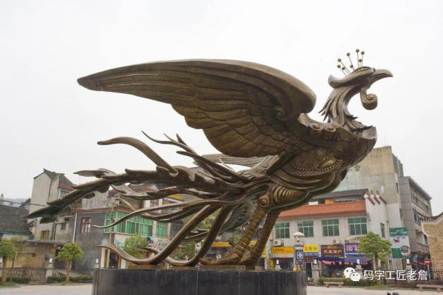 先说宏伟。凤凰古城面积较大,进入城中,街道里有小巷,且巷巷相通。巷子两旁都是古朴的房屋,有青砖的,有木板的,有住家,也有店铺,十分热闹。城中新建的文化广场中央,矗立着巨型凤凰铜雕,展翅欲飞,栩栩如生,这是湘西名人黄永玉的杰作。铜雕后面是层层楼阁,高耸入云,气势非凡,令人震撼。有人将凤凰与云南丽江古城相比,丽江小巧,凤凰宏大,论气势,凤凰更胜一筹。