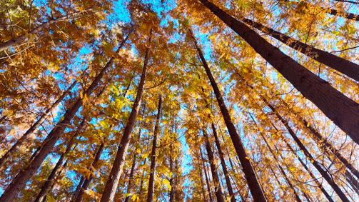 在占地超万平方米的水杉林里,30年树龄的水杉以笔直的树干撑起一片静谧的天空。依托“百千工程”,林下空间品质显著提升,使这里成为城市之外极佳的露营地。您可在此享受户外美食、观看森林电影,或亲手制作一件木工作品,感受自然的魅力与生活的乐趣。