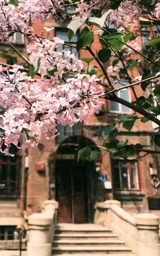红专街25 - 1号后楼,是一座建于1927年的俄罗斯风格老建筑,静静地伫立着,历史保护建筑的铭牌彰显着它百年的沉淀。走进一楼戈雅咖啡,推开木质门扉,老式木地板和油漆墙裙散发着旧时的气息,俄罗斯建筑特有的细长门窗棂,仿佛定格了时光。因纪录片《晚霞中的红蜻蜓》再度走红后,这座隐匿在老街深处的俄式老楼,连同院内的丁香树,成了哈尔滨新晋的网红地标,更像是一个承载城市记忆与光影故事的“天然摄影棚”。